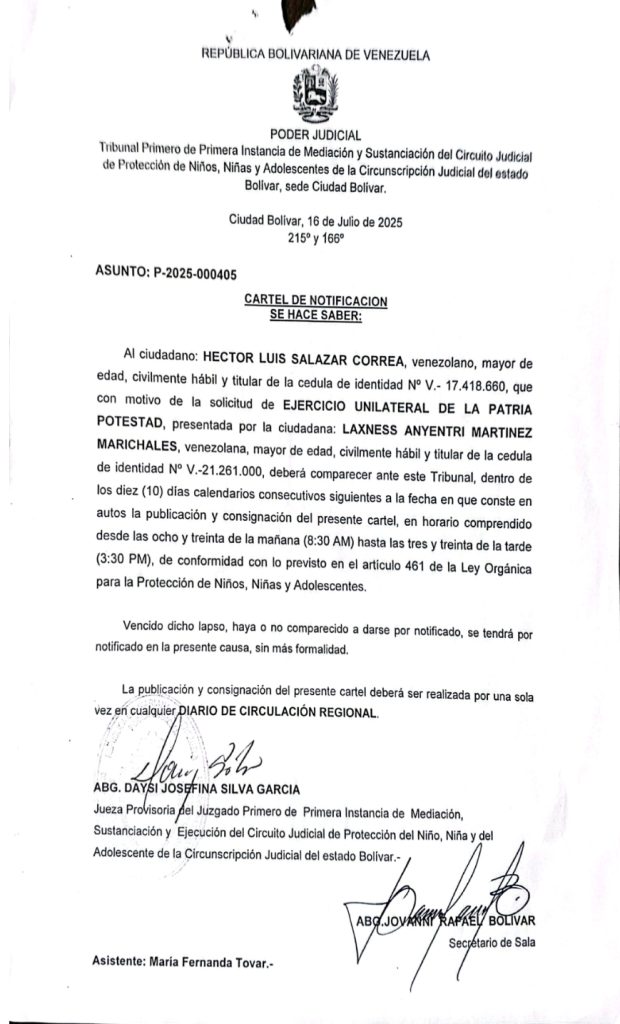 InicioAvisos Avisos Cartel de notificación 25 de julio de 2025 186 Divorcio por desafecto 4-12-25 FacebookTwitterInstagramTiktokTelegramWhatsApp Artículo anteriorAlejandra Guzmán pospone su gira tras someterse a una cirugía de emergenciaArtículo siguienteDetienen a profesora por apuñalar con un zarcillo a su pareja Roelsi GudiñoPeriodista, Productora Audiovisual, Fotográfa, Marketing Digital, Creador Digital FacebookTwitterInstagramTiktokTelegramWhatsApp - PUBLICIDAD- Canal de Telegram