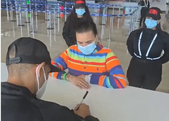 La publicación de Carvajalino, incluyó un video que muestra a funcionarios del Sebin escoltando a Merlo y a ella firmando documentos, confirmando su detención al momento de su llegada al país.