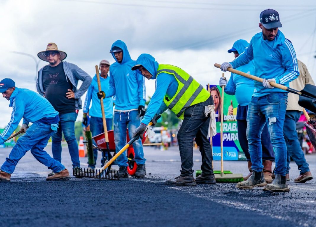 En el sector Palo Grande, vía que comunica a los municipios Caroní y Piar, la líder regional aseguró que la gestión bolivariana ha colocado más de 32 mil toneladas de asfalto en 60 días de gestión, consolidando la rehabilitación vial en el estado.