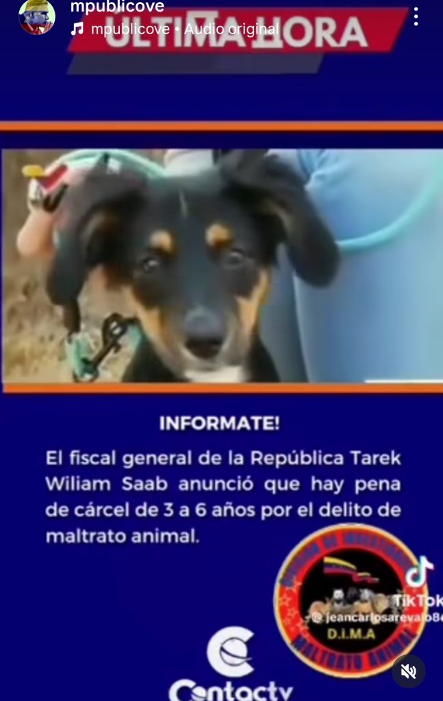 El fiscal general, Tarek William Saab, informó el domingo que el Ministerio Público (MP) venezolano establecerá penas de hasta tres y seis años de cárcel a quienes cometan maltrato animal, y también castigará con multas económicas de hasta 2.000 Unidades Tributarias (UT).