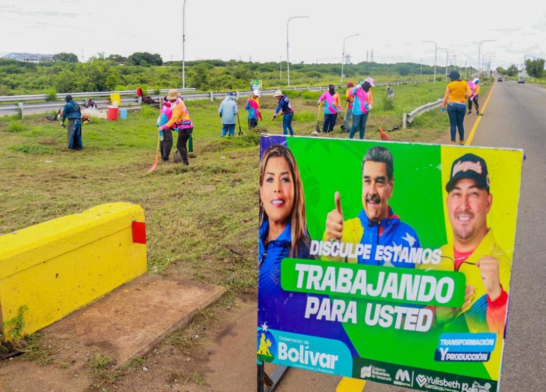 Equipos de la Secretaría de Mantenimiento y Servicios Generales se desplegaron en cuadrillas, en la vía que conecta al peaje de Ciudad Guayana con el portón 4 de la Siderúrgica del Orinoco (Sidor); abarcando un tramo de entre 8 y 10 kilómetros.