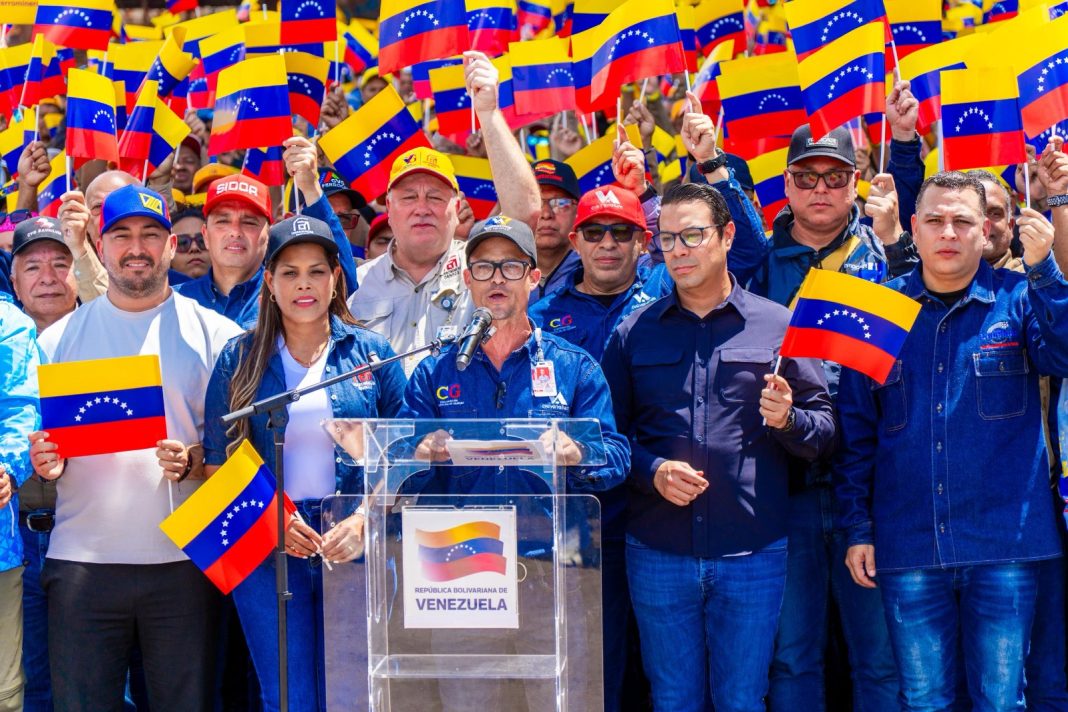 ‎La gobernadora del estado Bolívar, Yulisbeth García; el ministro de Desarrollo Minero Ecológico, Héctor Silva, y los alcaldes bolivarianos acompañaron a los trabajadores de las empresas que integran la Corporación Venezolana de Guayana (CVG), quienes alzaron sus voces en defensa de la soberanía nacional y en contra de las pretensiones del gobierno estadounidense.