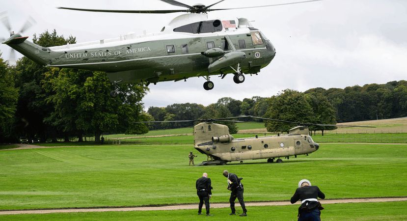 El helicóptero presidencial estadounidense Marine One, que transportaba al presidente Donald Trump y a la primera dama Melania Trump, realizó un aterrizaje inesperado este jueves cerca de Londres debido a un «pequeño problema hidráulico». El incidente ocurrió durante los últimos momentos de su visita de Estado al Reino Unido.