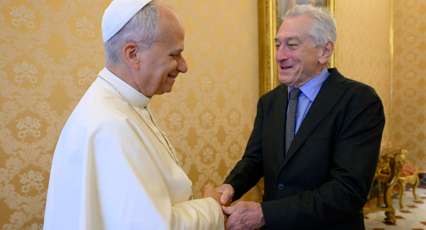 El reconocido actor estadounidense Robert De Niro fue recibido en audiencia privada por Su Santidad el Papa León XIV este viernes en el Palacio Apostólico del Vaticano, en el marco de su estancia en Roma con motivo de la inauguración de un nuevo hotel y la recepción de una alta distinción de la ciudad.