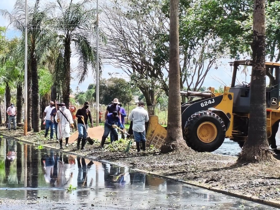 Hombres y mujeres comprometidos con el desarrollo integral del municipio trabajan sin descanso en la limpieza de áreas afectadas por la reciente crecida del río Orinoco, incluyendo la recolección de maleza y la recuperación de espacios públicos que resultaron impactados por la sedimentación.