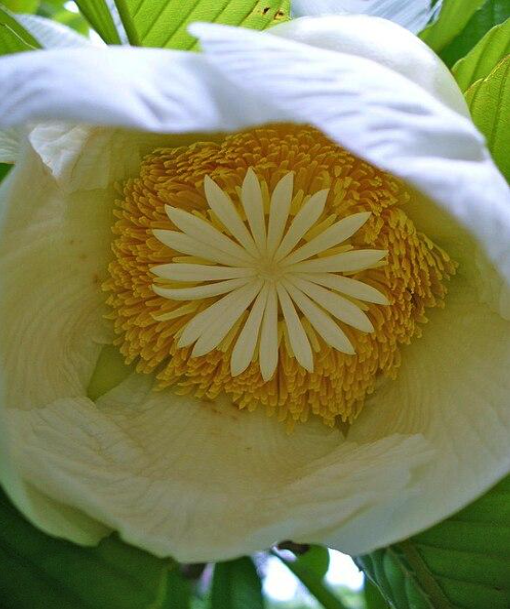 Es un árbol o arbusto perennifolio, con sistema radical profundo. Tronco recto de 30 cm de diámetro, corteza castaña con marcas anulares. Copa frondosa. Hojas coriáceas, oblongas, verde brillante, nervadura paralela prominente. Flores fragantes, solitarias, 20 cms de diámetro, sépalo-amarillentos, pétalos carnosos, estambres numerosos, curvados, amarillos, brillantes, los pistilos (órganos sexuales femeninos, receptor del polen) blancos, línea- lanceolados, achatados y se disponen radialmente en el centro de la flor.