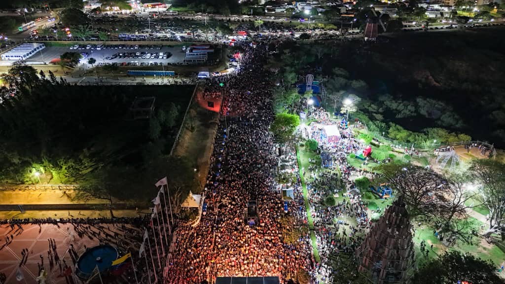 El momento emocionante llegó con el conteo regresivo, por parte del presidente de la CVG, cuando al unísono, todos gritaron “¡Feliz Navidad!” y, en un instante mágico, millones de luces de colores iluminaron la noche, viéndose brillar el Tricolor Nacional y las ocho estrellas en el edificio sede de la institución, una representación de nuestra amada Venezuela; además, en el patio central de la Plaza Las Banderas, se alumbró un imponente árbol navideño.