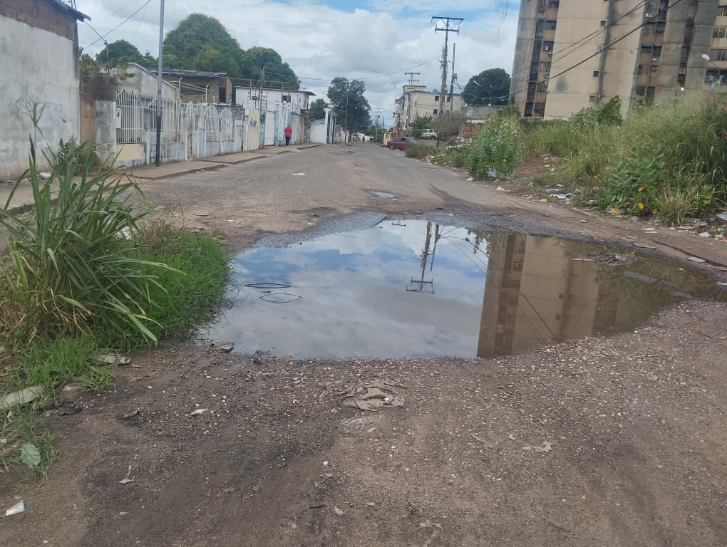 La entrada al sector presenta desde hace meses un profundo hueco que, con la llegada de las lluvias, se llena de agua y agrava aún más la situación para quienes transitan diariamente por la zona.