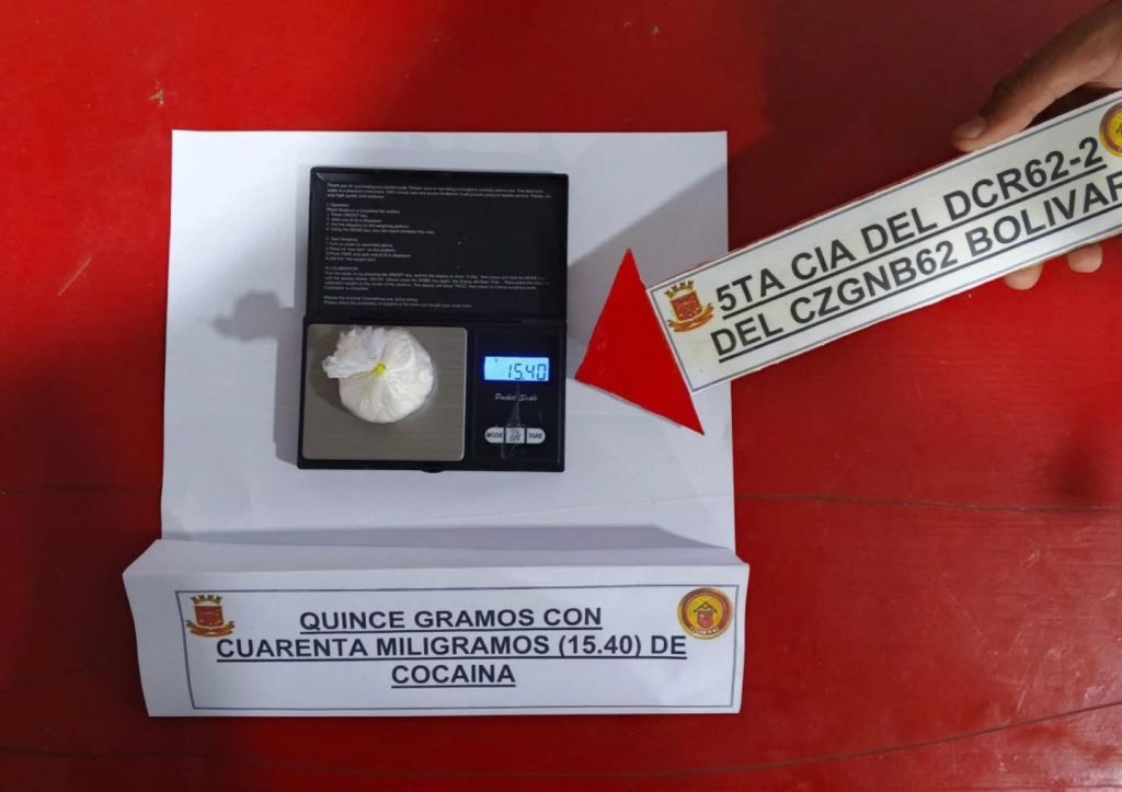 Durante el procedimiento, se incautó quince gramos y cuarenta miligramos (0,01540 kg) de presunta cocaína.