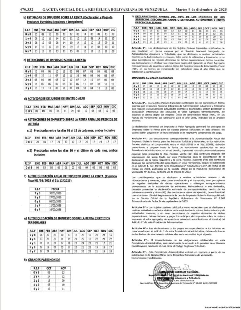 Cronograma para el Impuesto sobre la Renta (ISLR)