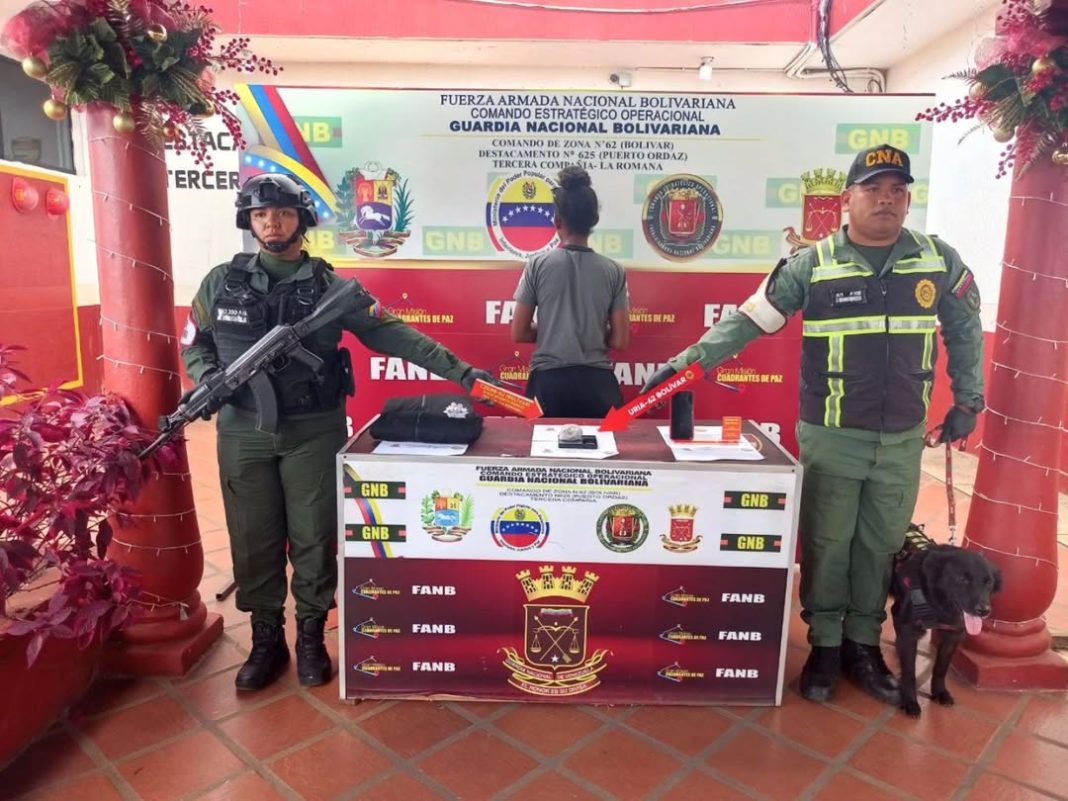 Efectivos de la Fuerza Armada Nacional Bolivariana (FANB) efectuaron la captura de una ciudadana implicada en el presunto transporte de sustancias estupefacientes y psicotrópicas.