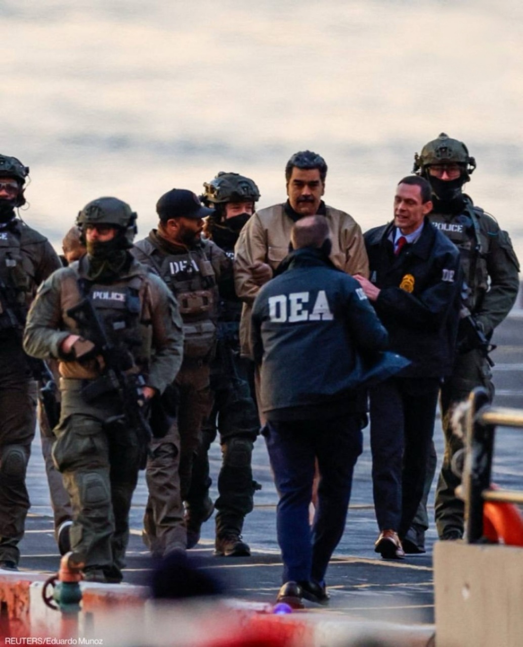Nuevas imágenes han circulado recientemente mostrando a Maduro esposado y custodiado por agentes federales fuertemente armados mientras abordaba un vehículo de transporte oficial. En un video adicional, se observa al mandatario descendiendo del automóvil para ser trasladado a un helicóptero bajo un estricto anillo de seguridad.