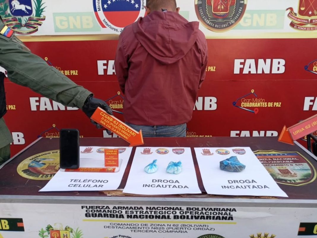 Efectivos de la Fuerza Armada Nacional Bolivariana (FANB) detuvieron a un ciudadano que transportaba diversos envoltorios de sustancias estupefacientes en el Punto de Atención al Ciudadano (PAC) «La Romana» del estado Bolívar.