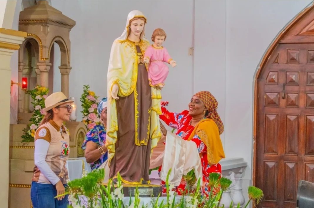 La Iglesia Nuestra Señora del Carmen abrió sus puertas desde tempranas horas para recibir a cientos de mujeres que, ataviadas con sus impecables trajes de colores vibrantes, turbantes perfectamente elaborados y pesadas joyas de oro, rindieron tributo a su fe y a sus ancestros.