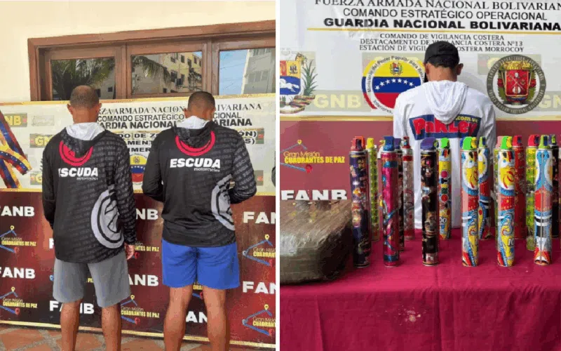 La Guardia Nacional Bolivariana (GNB) del estado Falcón informó que se llevó a cabo la detención de dos hombres y se incautó una embarcación por la presunta comisión de delitos ambientales en el Parque Nacional Morrocoy. Un tercer hombre, fue arrestado por venta de aerosoles tóxicos.