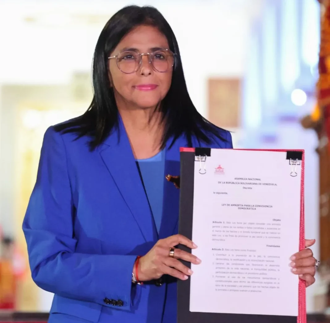 Desde el Palacio de Miraflores, la presidenta encargada de Venezuela, Delcy Rodríguez, firmó la noche de este jueves la Ley de Amnistía para la Convivencia Democrática.