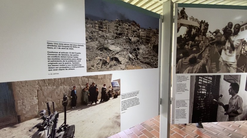 Una exhibición de imágenes relacionadas con conflictos armados, víctimas, desplazamientos, ayuda humanitaria que busca sensibilizar al público sobre la importancia del respeto hacia el DIH y su aplicación en situaciones de conflicto, resaltando el compromiso del Comité Internacional en la protección de la dignidad humana.