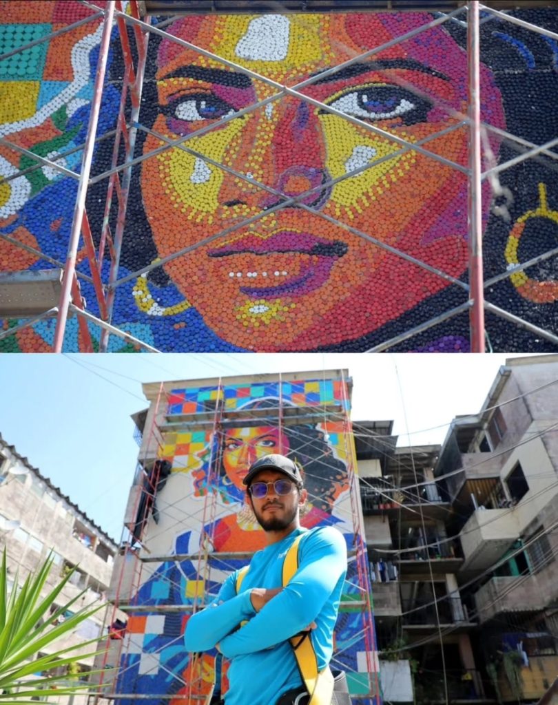 A través de su cuenta de Instagram, Olivares informó que el mural fue realizado con tapas en su color original y que ya puede ser visitado en el edificio 88 del sector.
