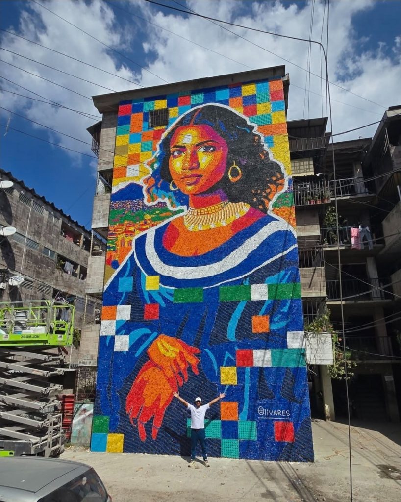 El artista venezolano Óscar Olivares anunció el 20 de febrero la culminación del mural elaborado con tapas plásticas más alto del mundo, una obra ubicada en la colonia Zacamil, en El Salvador, que supera los 13 metros de altura y fue creada con más de 100 mil piezas recicladas.