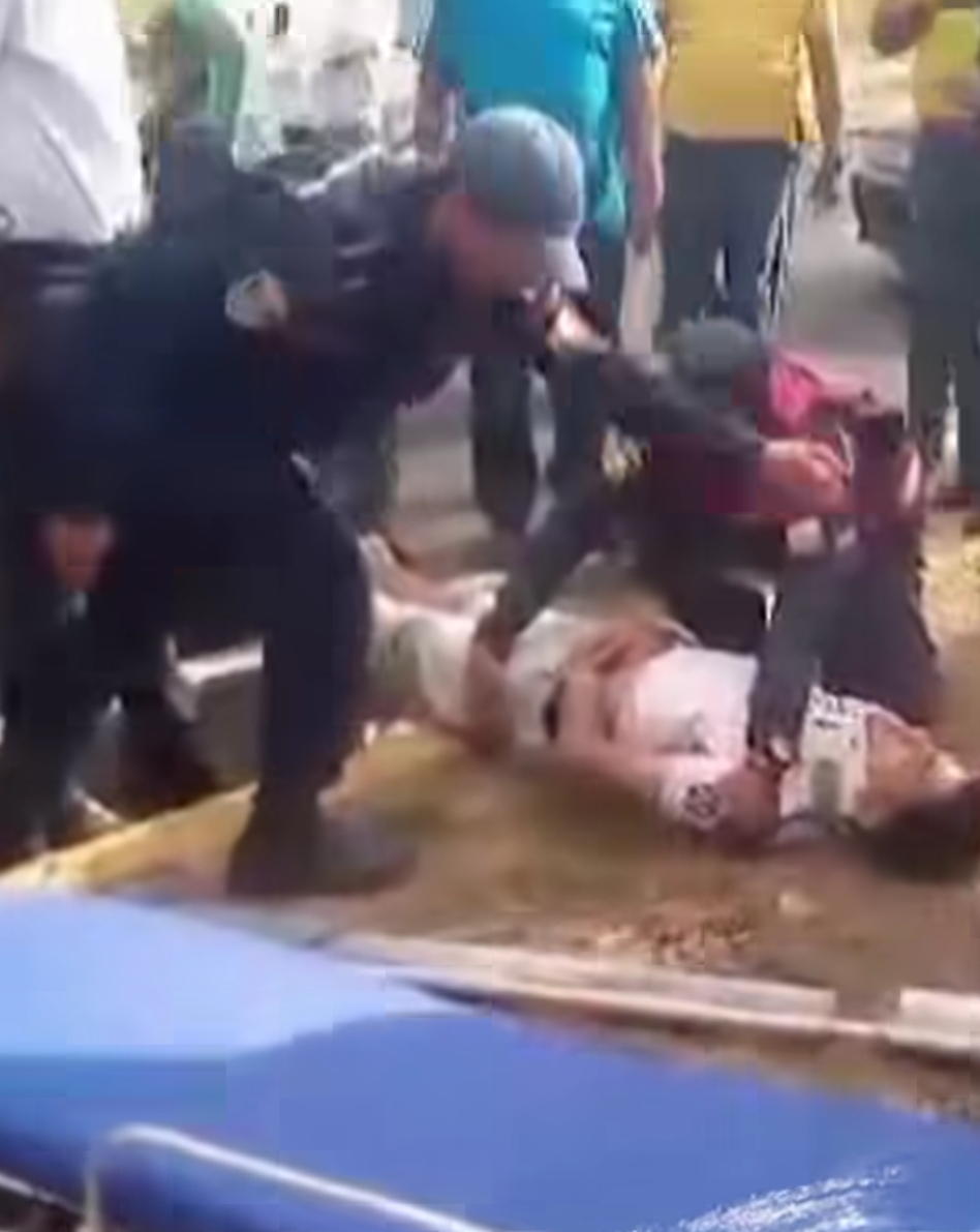 Debido a la fuerza del choque, el motorizado salió proyectado de su unidad, quedando tendido sobre la isla central de la referida arteria vial con múltiples heridas visibles en su cuerpo.