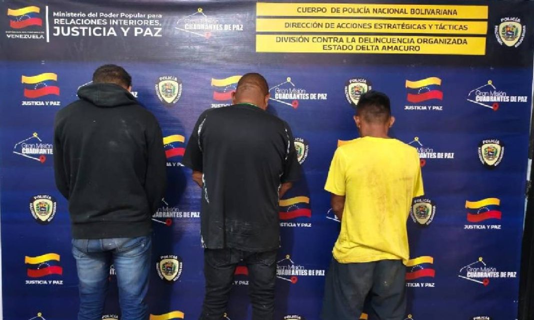 La captura se llevó a cabo durante labores de patrullaje fluvial en aguas del estado Delta Amacuro. Los efectivos interceptaron una embarcación en la que se encontraban los tres detenidos, de 53, 38 y 19 años de edad, quienes presuntamente formaban parte activa de esta organización criminal.
