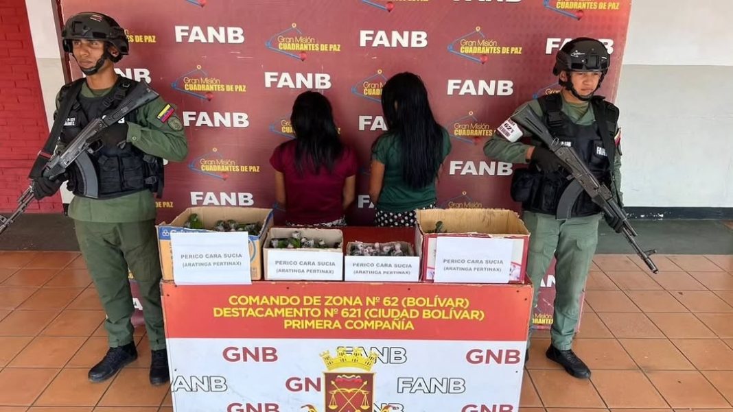 En el marco de los operativos de seguridad y resguardo ambiental, efectivos de la Fuerza Armada Nacional Bolivariana (FANB), adscritos al CZGNB-62 Bolívar, lograron la detención de dos ciudadanas vinculadas al tráfico ilícito de especies protegidas.