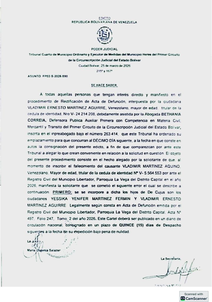 InicioAvisos Avisos Cartel de notificación | Rectificación de acta de defunción 30 de marzo de 2026 3 30.03.2026 Etiqueta BolívarCiudad BolívarCiudad Guayana FacebookTwitterInstagramTiktokTelegramWhatsApp Artículo anteriorCartel de notificación | Rectificación de defunciónArtículo siguienteInicia despliegue nacional de verificación de balanzas durante Semana Santa 2026 Jesús David OcaPeriodista, técnico en producción de medios, redactor y blogger venezolano. Amante de la literatura, música, curiosidades y la cultura. FacebookTwitterInstagramTiktokTelegramWhatsApp - PUBLICIDAD-