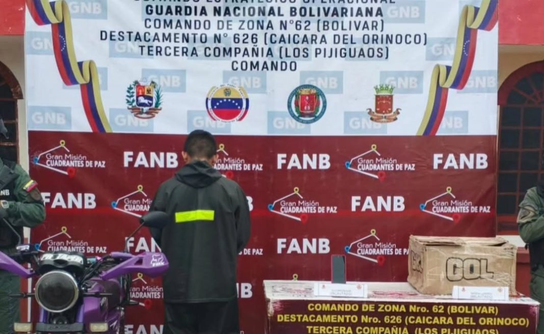 Efectivos de la Fuerza Armada Nacional Bolivariana (FANB), adscritos al Comando de Zona de la Guardia Nacional Bolivariana N° 62 (CZGNB-62), lograron la aprehensión de un ciudadano presuntamente vinculado a Grupos Irregulares Armados Fronterizos (GIAF).