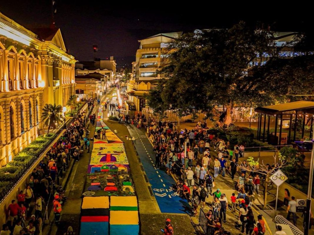 Durante la Semana Santa en Centroamérica también se elaboran gigantescas alfombras de serrín en Guatemala y Honduras.