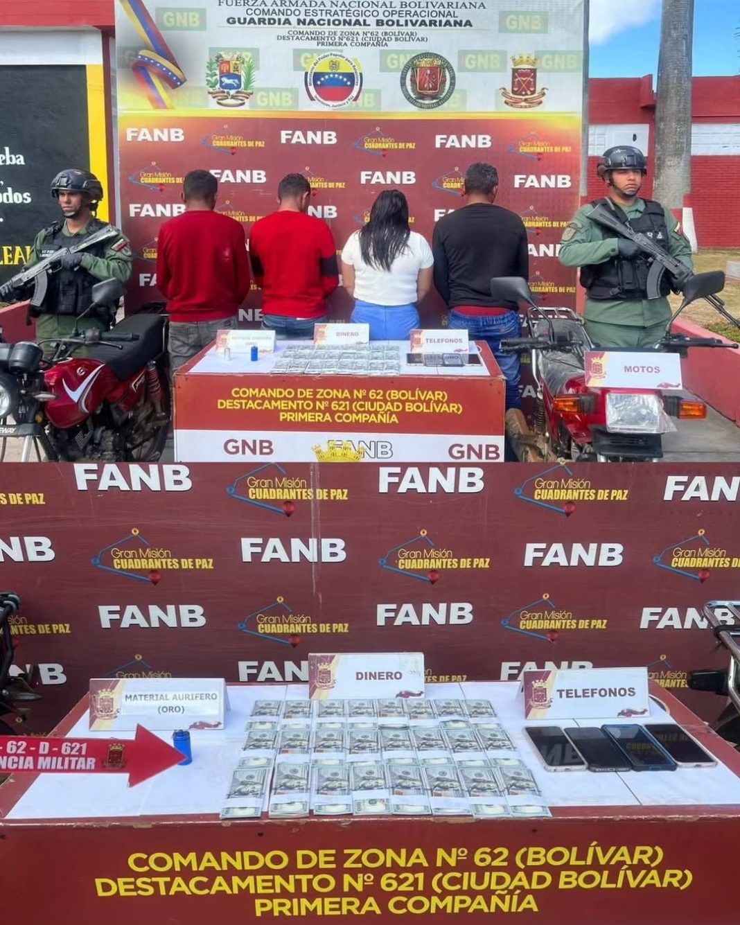 En un operativo de seguridad enmarcado en las labores de escudriñamiento y profilaxis en el estado Bolívar, efectivos de la Guardia Nacional Bolivariana (GNB), adscritos al Comando de Zona N° 62, lograron la captura de cuatro ciudadanos presuntamente vinculados al Grupo de Delincuencia Organizada (GEDO) conocido como «El Negro Juancho».