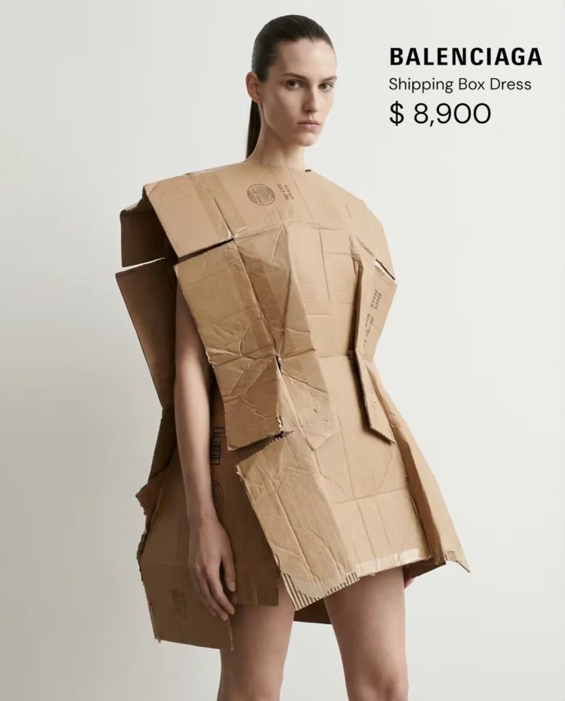 Balenciaga, vuelve a ser tendencia en el mundo de la moda al presentar un vestido inspirado en cajas de cartón que cuesta la impresionante cifra de $8.900.