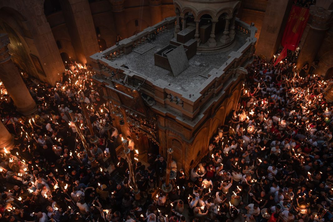 Miles de fieles cristianos han acudido este sábado a la iglesia del Santo Sepulcro, en la ciudad de Jerusalén, para presenciar la ceremonia anual del descenso del Fuego Sagrado.