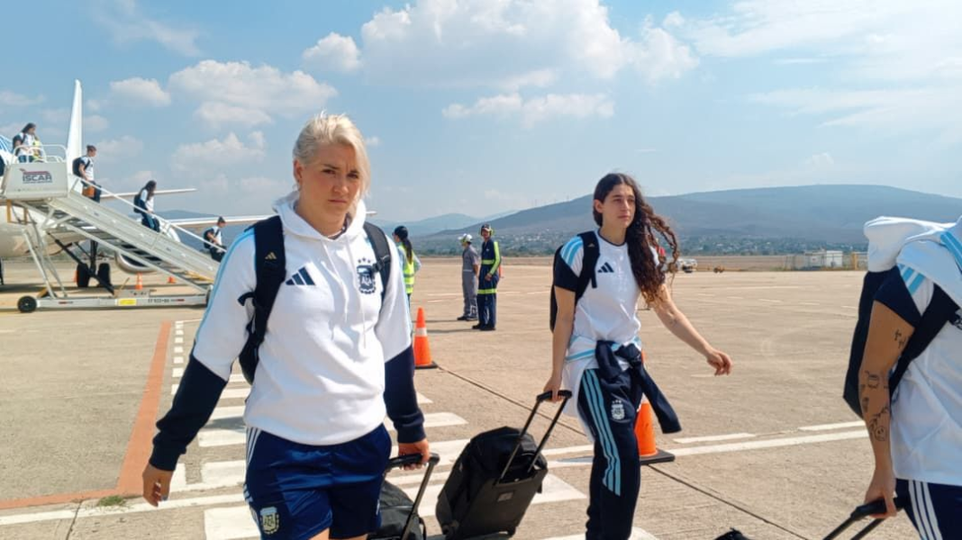 En el vuelo arribó el presidente de la delegación argentina, Jorge Barrios, junto al director técnico Germán Portanova y figuras destacadas de la plantilla como Gabriela Pereyra, Kishi Núñez y María Florencia Bonsegundo.