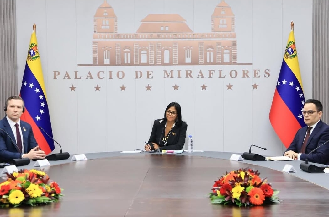 La presidenta encargada de Venezuela, Delcy Rodríguez, sostuvo este martes un encuentro en el Palacio de Miraflores con el subsecretario de la Oficina de Hidrocarburos y Energía Geotérmica de Estados Unidos, Kyle Haustveit, en el marco de la agenda bilateral energética entre ambos países.