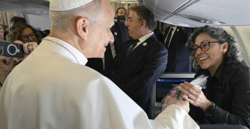 Gómez, quien forma parte del equipo de Catholic News Service cubriendo las actividades del Sumo Pontífice, decidió romper el hielo durante el vuelo inaugural de una gira que contempla un recorrido por cuatro países, once ciudades y 18 vuelos internos en apenas diez días.