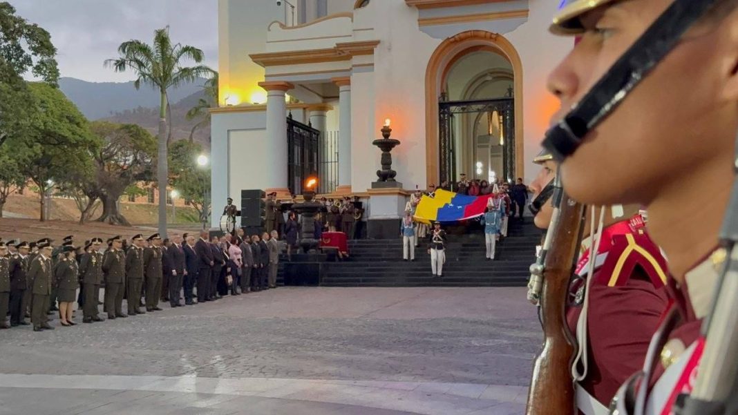 La jornada conmemorativa inició con la tradicional izada de la Bandera Nacional en el Altar de la Patria, donde los asistentes rindieron honores al Pabellón Nacional, acompañados por las notas del Himno Nacional «Gloria al Bravo Pueblo». Este acto reafirmó la vigencia del compromiso institucional con la memoria histórica y el respeto profundo a los próceres que forjaron la libertad del país.