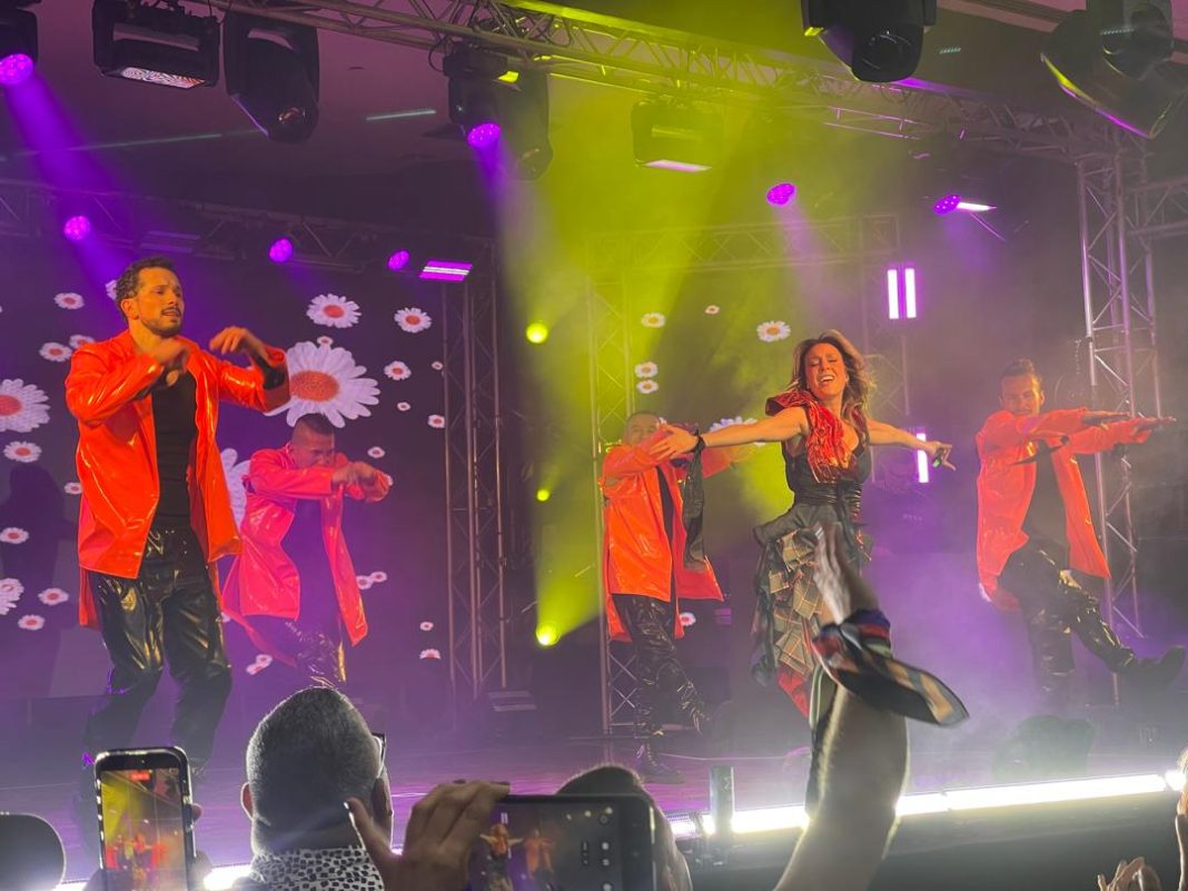 A medida que avanzaba la velada, el repertorio recorrió temas emblemáticos como Me enamoro de ti y Tierna la noche. La cantante demostró su versatilidad con cinco cambios de vestuario que aportaron dinamismo a un show basado en pistas y coreografías precisas.